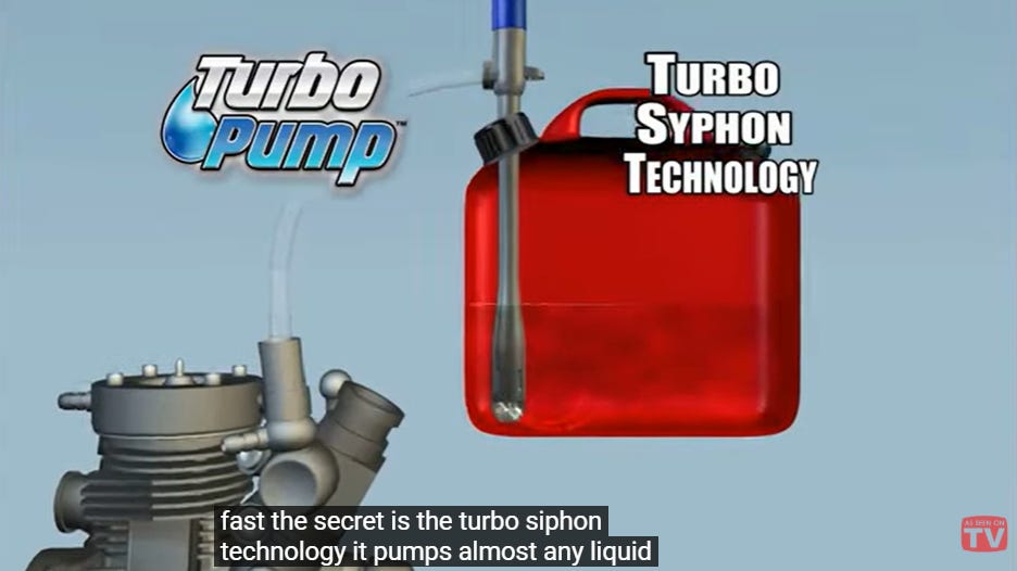 Imagine someone walks up to you and says: “Rob, I want to introduce you to the Turbo Pump, the automatic, cordless, powered liquid transfer pump.” Here’s what happens in your brain: