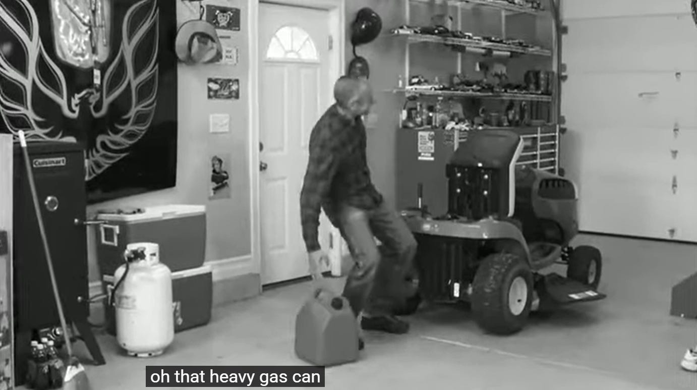 P+U: Whenever you are trying to fill something (like a lawnmower) with gas in your garage…